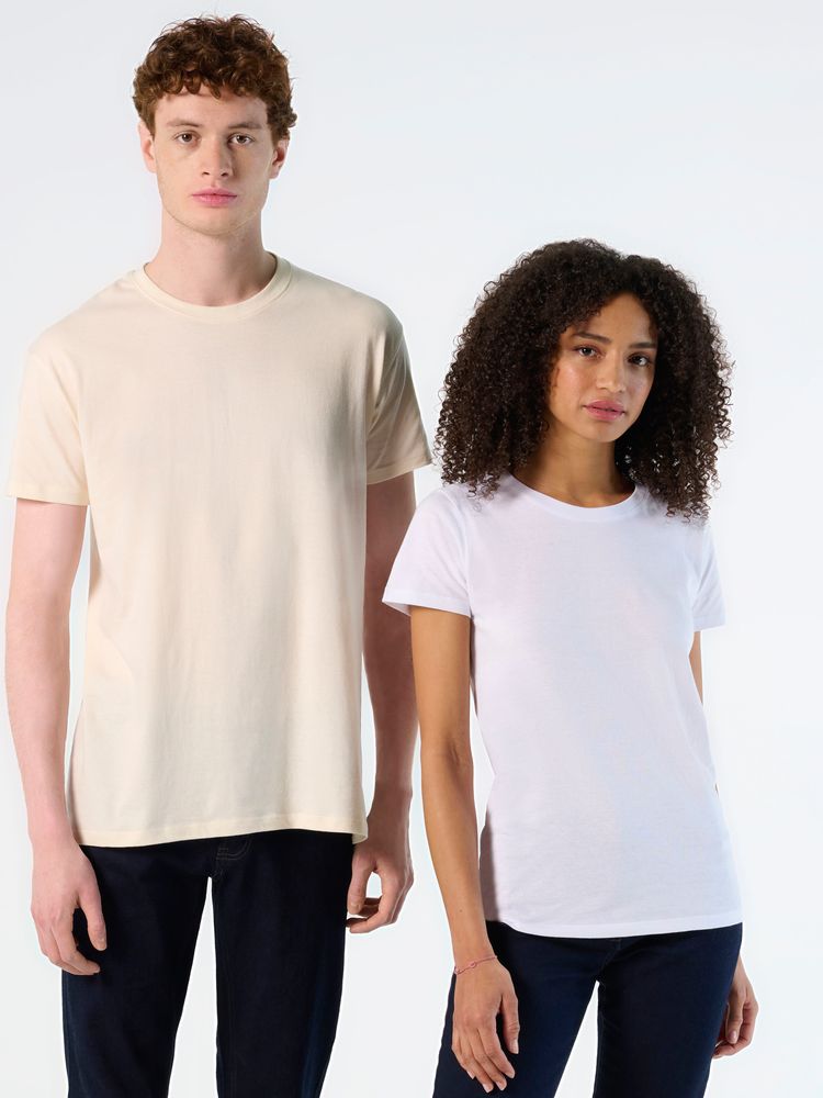 - Мягкое полотно джерси из натурального полугребенного хлопка плотностью 150 г/м²: приятное ощущение при контакте с кожей и идеальная поверхность для логотипа